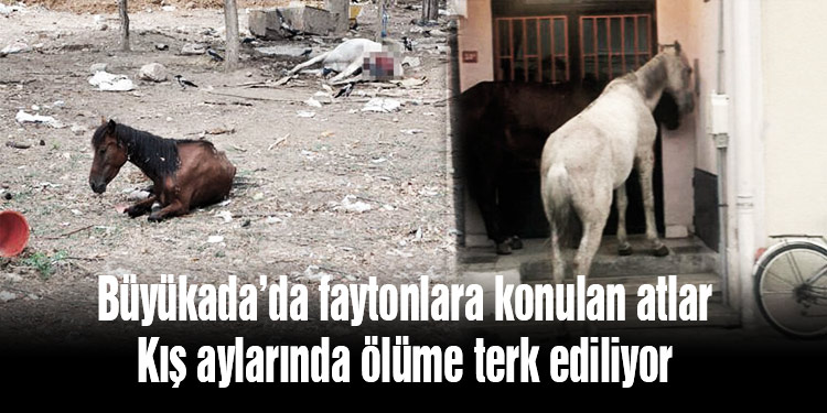 Büyükada’da, yaz aylarında faytonlara konan atları faytoncular, kışın “işe yaramaz” diyerek terk etdiyor. Kendi haline bırakılan atlar, soğuktan korunmak ve yemek bulmak için apartman girişlerine sığınıyor.
